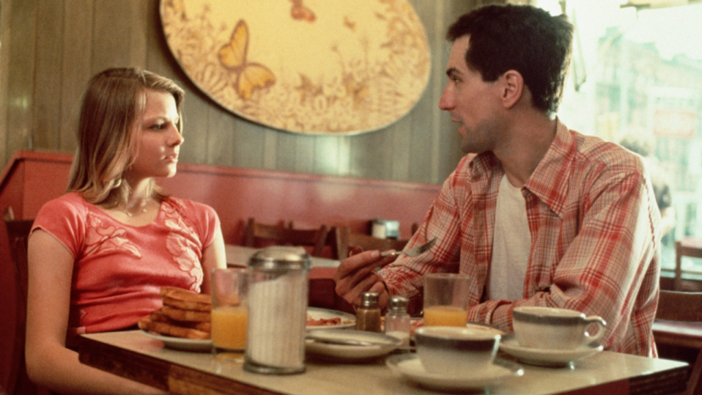 Travis Bickle è un caso emblematico di solitudine radicale. In Taxi Driver l’insonnia è metafora di ipervigilanza costante: Travis non dorme perché dormire significherebbe spegnere la tensione che lo definisce. È un uomo che non riesce a stabilire connessioni autentiche. L’innamoramento per Betsy per esempio, è idealizzazione pura, proiezione di un bisogno di purezza in mezzo al caos. Quando la relazione fallisce, la frustrazione si trasforma in rancore. Psicologicamente, Travis mostra tratti paranoidi: percepisce il mondo come ostile, costruisce narrazioni in cui lui è l’unico lucido in mezzo alla corruzione. La missione di salvare Iris è l’apice di questo schema. In Taxi Driver la redenzione è travestita da violenza.