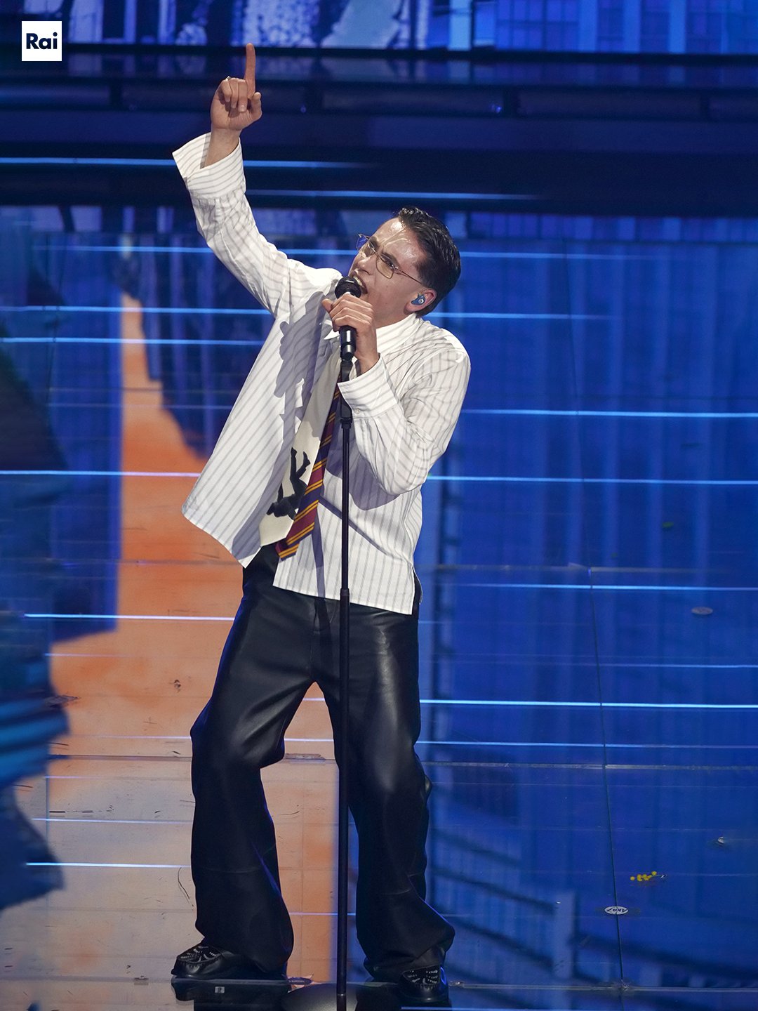 La cravatta con l’uomo che cade alla Mad Men non raggiunge i livelli della cravatta con le paperelle di Barney Stinson, ma comunque fa guadagnare punti di iconicità. La camicia sembra pronta per affrontare un’altra giornata a Severance. D’altronde, cos’altro è Sanremo 2026 se non un’esperienza che ripetiamo ogni anno, poi dimentichiamo tutto o quasi, e che ci trascina in un circolo infinito in cui ogni febbraio si ferma per un altro Sanremo, di cui forse dimenticheremo tutto o quasi… e così via.