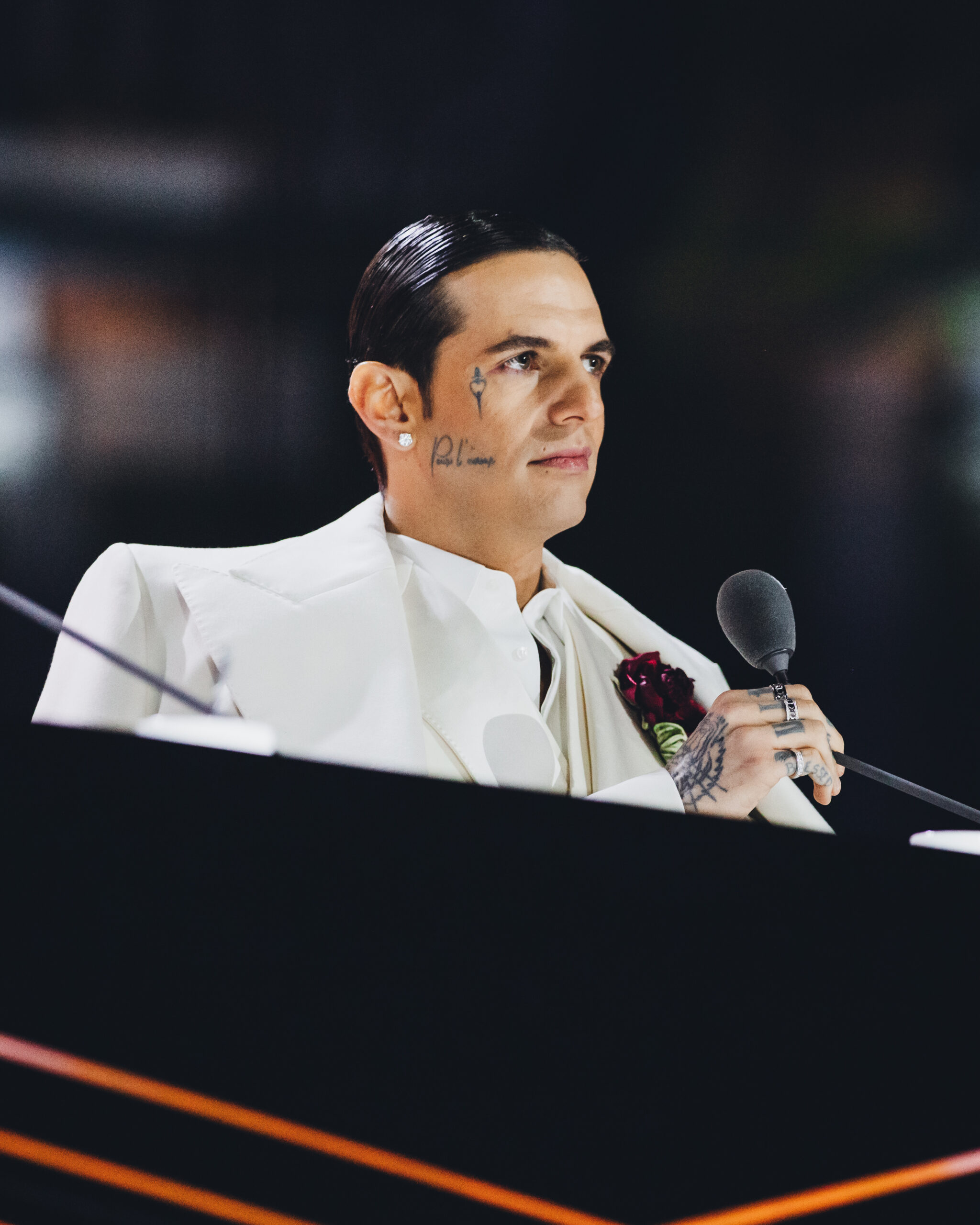 Con una mise degna del Castello delle Cerimonie e un calice che ai meno attenti potrebbe sembrare il Sacro Graal (o semplicemente ispirare un nuovo capolavoro di Dan Brown), Jake La Furia è stato il vero divo di Piazza del Plebiscito. Ci perdoni Jason Derulo per questa affermazione.