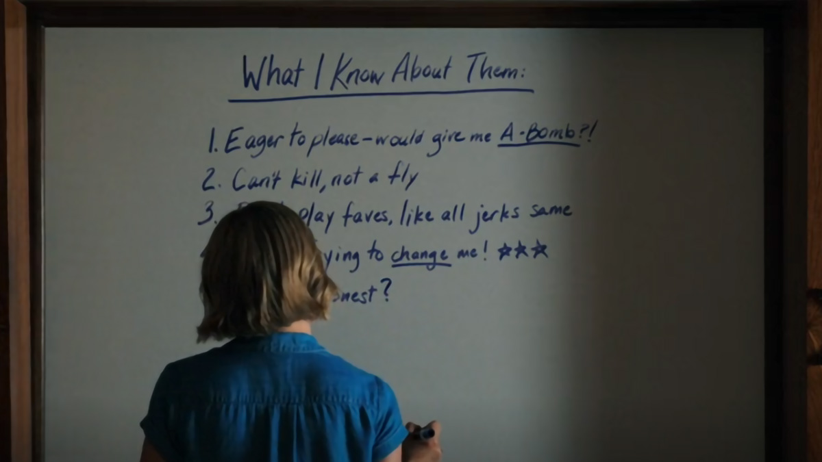 I primi minuti che le vengono dedicati non ci dicono moltissimo sul suo personaggio. Nessuna informazione da identikit asettico, in ogni caso. Conosciamo Carol attraverso i suoi sguardi tristi, i suoi sospiri, le bugie che racconta a se stessa e ai suoi lettori. È una donna che ha una scarsa considerazione del proprio lavoro. Un lavoro che l’ha resa autrice di best seller, una scrittrice amata in tutto il Paese. Eppure, Carol non è felice. Ha incamerato tante aspirazioni frustrate. Deve aver sofferto per non aver potuto dare sfogo alla sua vera natura. Perché è così triste? Si tratta del suo lavoro, di quei libri che scrive ormai solo per accontentare i suoi fan o di quell’opera alla quale lavora da quattro anni e mezzo ma che non ha ancora avuto il coraggio di pubblicare?