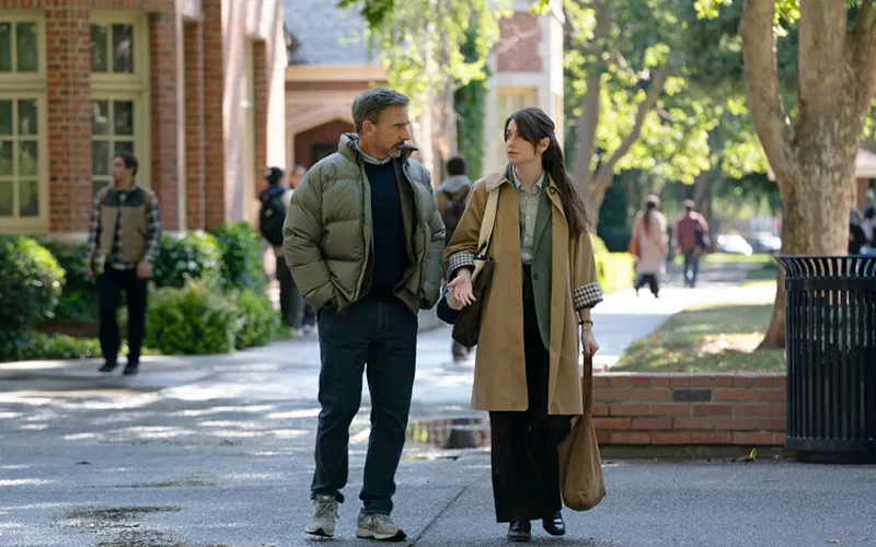 Una delle prime immagini che vediamo nel pilot è quella di un uomo muscoloso che gira per il campus a petto nudo, sicuro di sé e quasi spavaldo. Sono d’altronde i tratti di Rooster, il protagonista dei libri scritti da Greg. Una sorta di suo alter ego in cui lui proietta le qualità che vorrebbe avere ma non ha. Il volto di Steve Carell riesce a rendere perfettamente questa tipologia di personaggio, oscillando sempre tra il comico e il malinconico. Greg Russo vorrebbe essere Rooster, ma sa di essere un uomo un po’ impacciato che si trascina avanti con delle ferite ancora aperte. I prossimi episodi scaveranno più a fondo nel passato del protagonista e nel suo rapporto con la figlia, ma già da questo primo episodio intuiamo che il collasso del suo matrimonio deve avergli lasciato un vuoto profondo dentro.