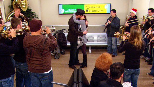Grazie al tempo concesso loro dal destino, riescono infine a incontrarsi proprio in quell’aeroporto, tra la sorpresa di Lily e la soddisfazione di Marshall, circondati da un’orchestra che suona per loro Auld Lang Syne, tipica canzone natalizia.